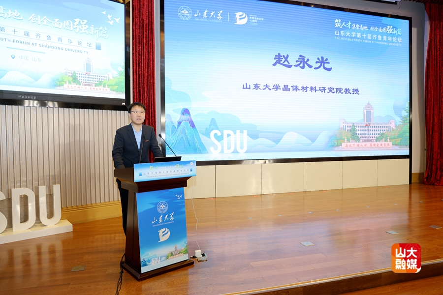 济南市委组织部人才工作二处处长吴俊,青岛市委组织部人才工作处副处长成文超,威海市委组织部副部长田素青分别介绍了三地的人才支持政策,聚焦“城市魅力”“产业实力”和“人才服务保障力”,解读了城市特色优势、重点发展领域及保障配套措施。山东大学人事部部长、人才工作办公室主任刘健从人才队伍概况、体制机制改革、人才体系构建、青年成长通道及评价激励等多个维度,系统解读了学校的人才政策与建设成效。晶体材料全国重点实验室教授赵永光作为引进青年人才代表分享了自己回归母校求职的经历,诚邀青年才俊加盟山东大学共赴新程。