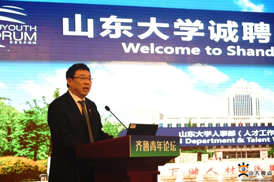 论坛上,山东省委组织部人才工作处处长房德山介绍了山东省基本情况、人才政策体系以及人才服务保障情况。他谈到,山东省大力实施人才兴鲁行动、人才制度改革攻坚行动,人才发展环境日益优化,吸引了大批海内外人才来鲁创新创业,国家战略平台交汇落地,高质量发展蓬勃兴起。当下的山东,人才政策体系更加完备,人才发展机制更加灵活开放,人才服务保障更有温度,希望通过齐鲁青年论坛这个平台,与海内外青年才俊加深友谊、深化合作,共同发展。山东大学高等技术研究院许伟伟教授作为学校引进青年人才代表,在交流发言中回顾了自己的海外求学经历和回国选择山东大学的心路历程,介绍了自己在山东大学的发展情况,并感谢学校提供的发展平台和服务保障。他表示,希望通过自己在科研上的不断奋斗进取来回报国家和学校的培养支持,也希望海内外青年人才都能加盟山大,助力山东,将研究写在这片大地上。