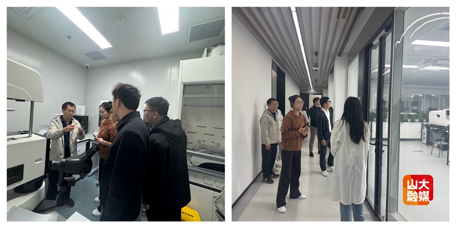 齐鲁医学院人事人才办公室副主任黄涛主持会议。会后,山东大学医学创新研究共享大平台主任齐磊带领参会学者参观转化医学共享平台与生物医学结构表征中心(冷冻电镜平台),详细介绍平台的核心设备配置、技术服务能力及在生物大分子结构解析、药物靶点验证等领域的科研成果,学者们结合自身研究方向与平台团队深入交流,直观感受平台的科研支撑实力。